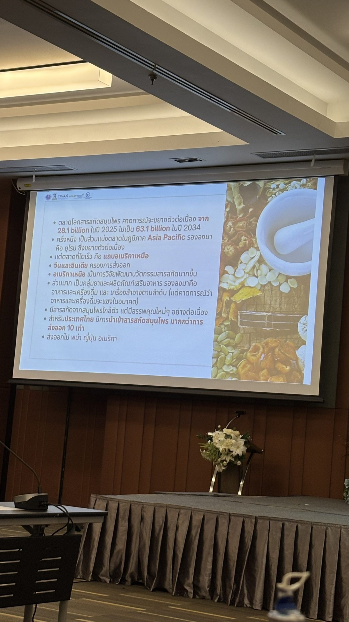 การนำเสนอในครั้งนี้มุ่งเน้นถึงความสำคัญของการใช้วัตถุดิบสมุนไพรที่มีแหล่งที่มา ที่เหมาะสม ผ่านกระบวนการควบคุมคุณภาพ และการพัฒนาสารสกัดสมุนไพรให้ได้มาตรฐาน เพื่อรองรับการนำไปใช้ในเชิงพาณิชย์อย่างปลอดภัย และสร้างความเชื่อมั่นให้กับภาคอุตสาหกรรมและผู้บริโภค