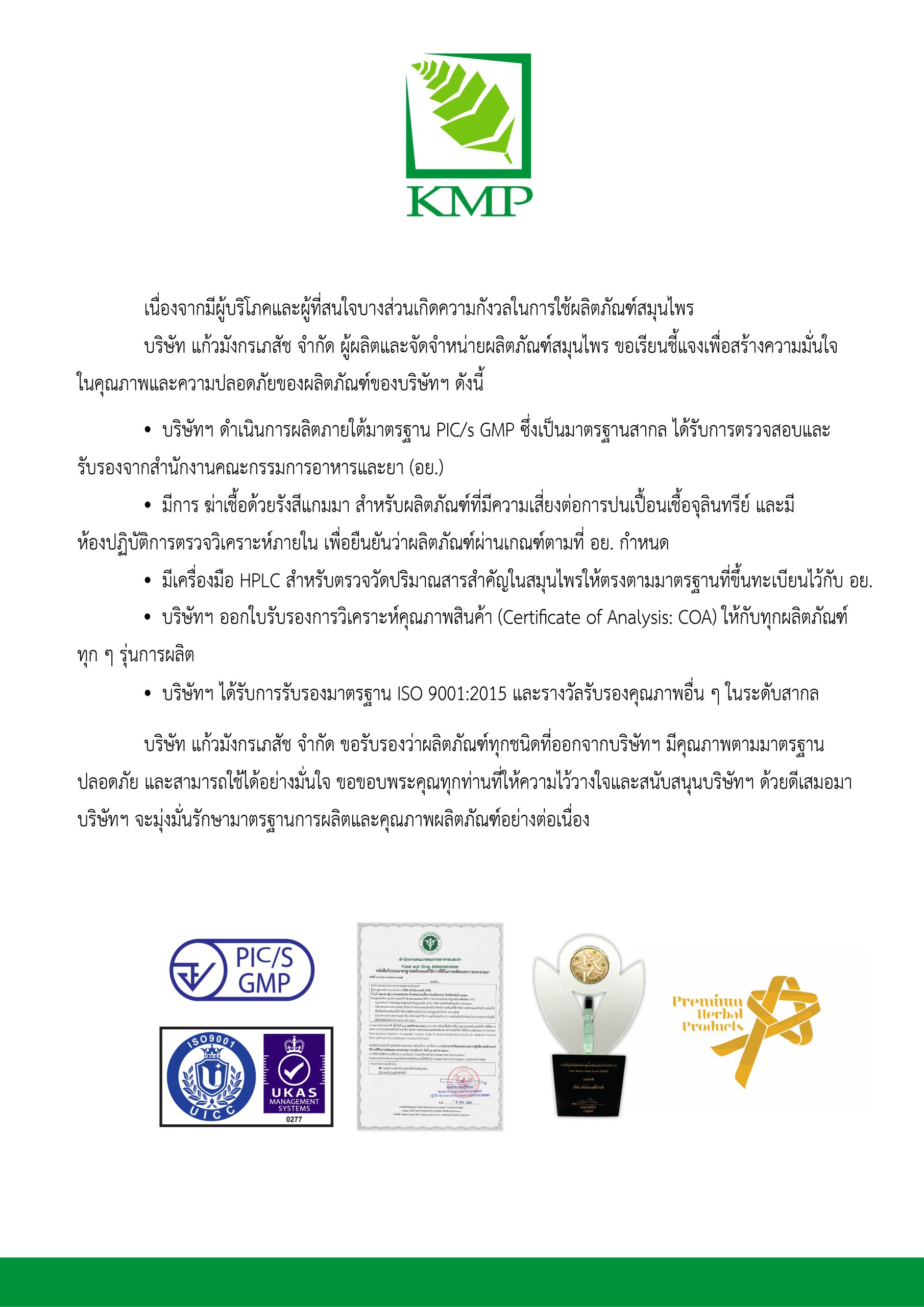 บริษัท แก้วมังกรเภสัช จำกัด ขอเรียนชี้แจงเพื่อสร้างความมั่นใจ ในคุณภาพและความปลอดภัยของผลิตภัณฑ์