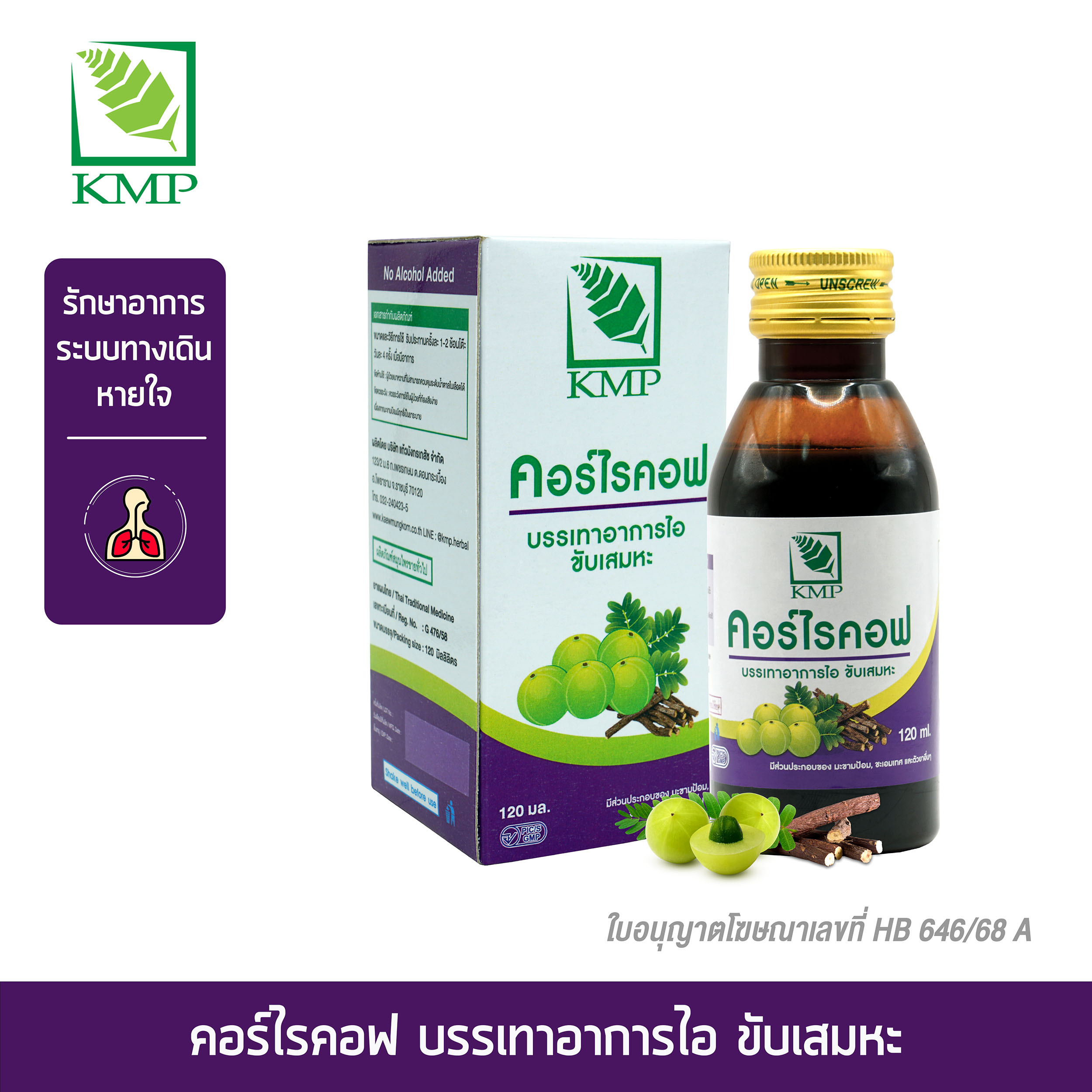 ขนาดบรรจุ : ขวด PET 120 มิลลิลิตร